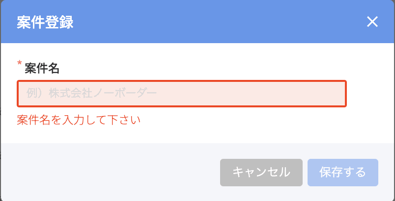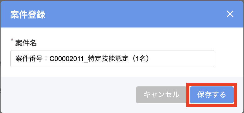 ・案件名を入力・保存すると、後からの変更ができなくなりますのでご注意ください。