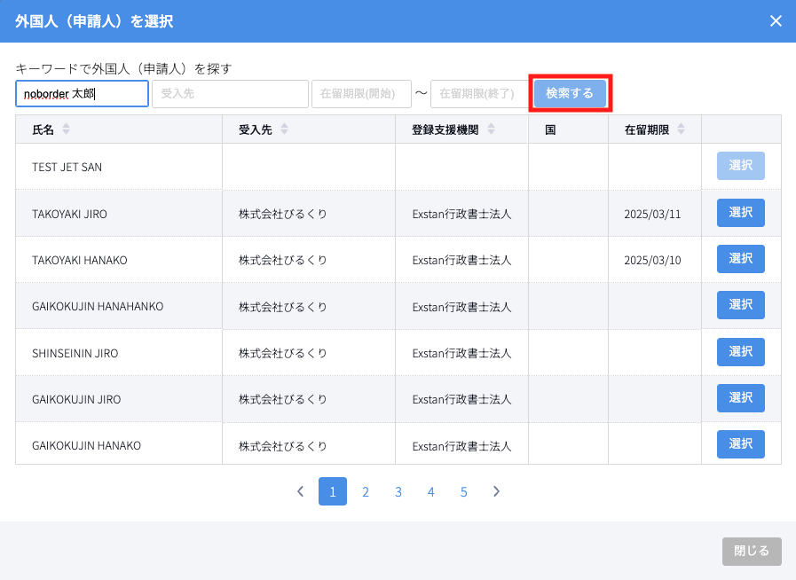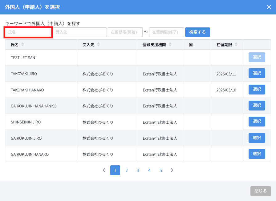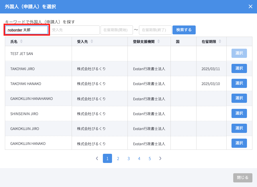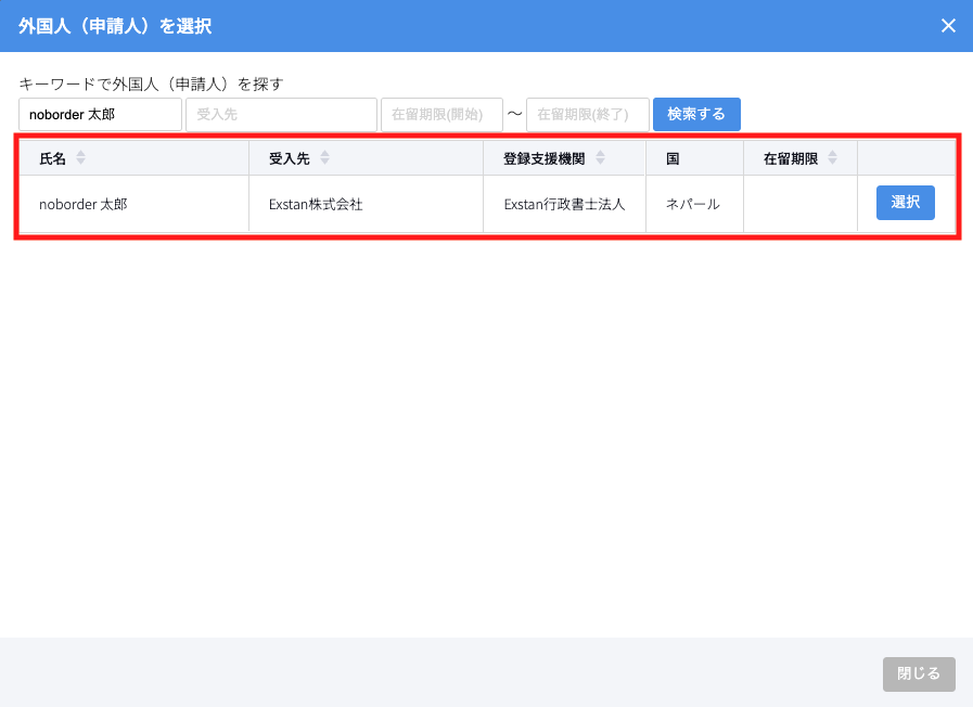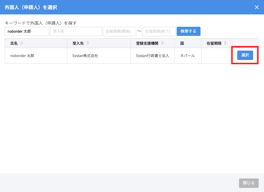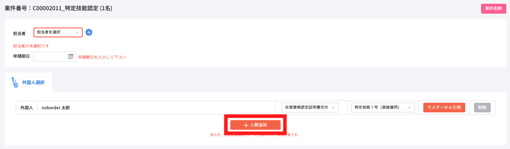 →受入先と支援情報を予め設定していない外国人は、マスターから引用することができません。