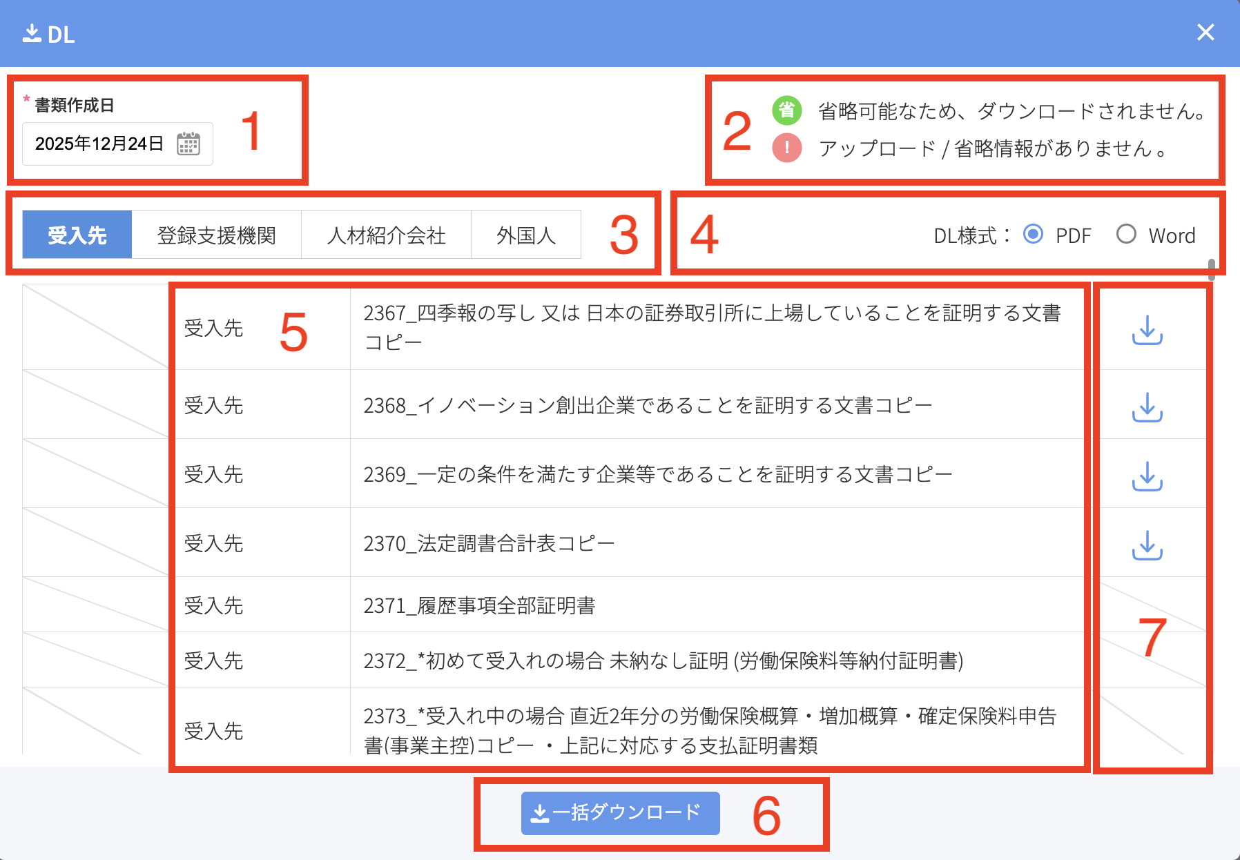 ・DLアイコン:本申請で必要となる書類です。