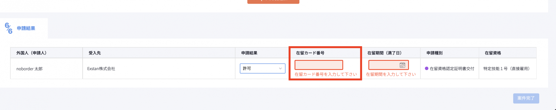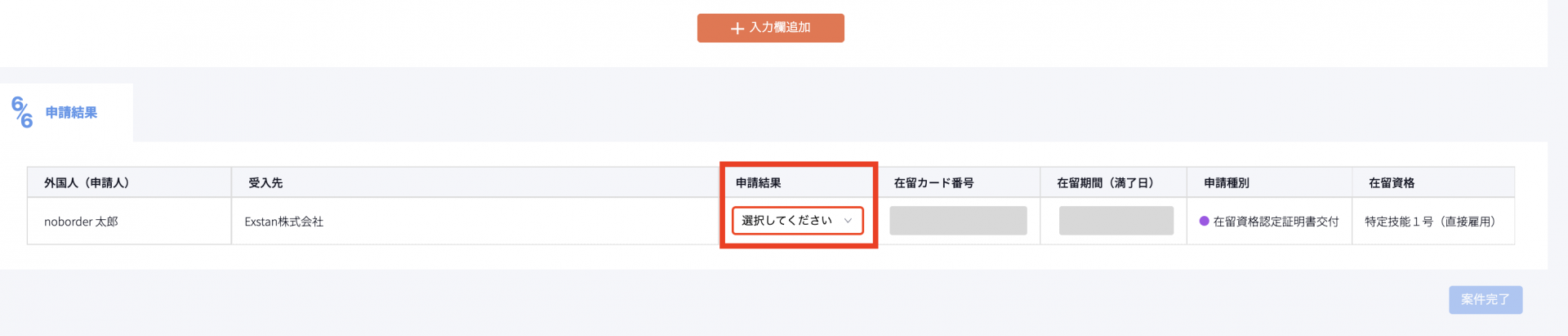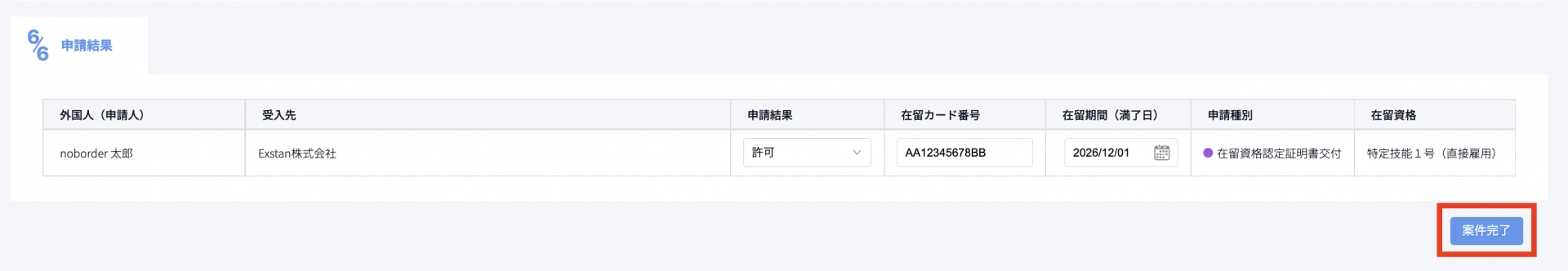 →「案件完了」を押下すると、マスター外国人(申請人)情報に反映されます。