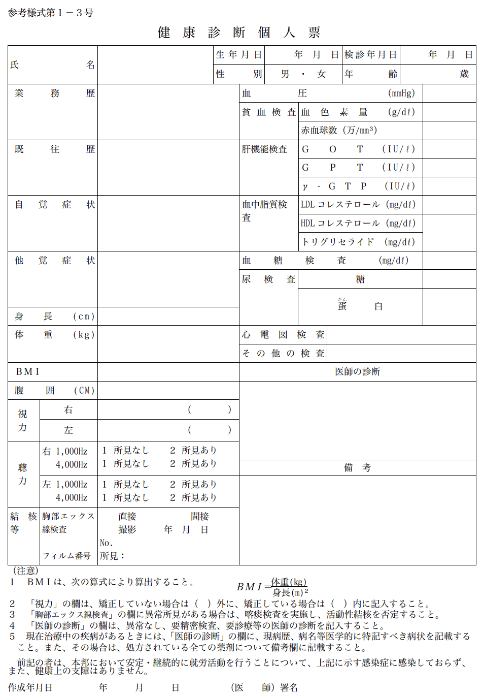 健康診断書 (参考様式第1-3号)