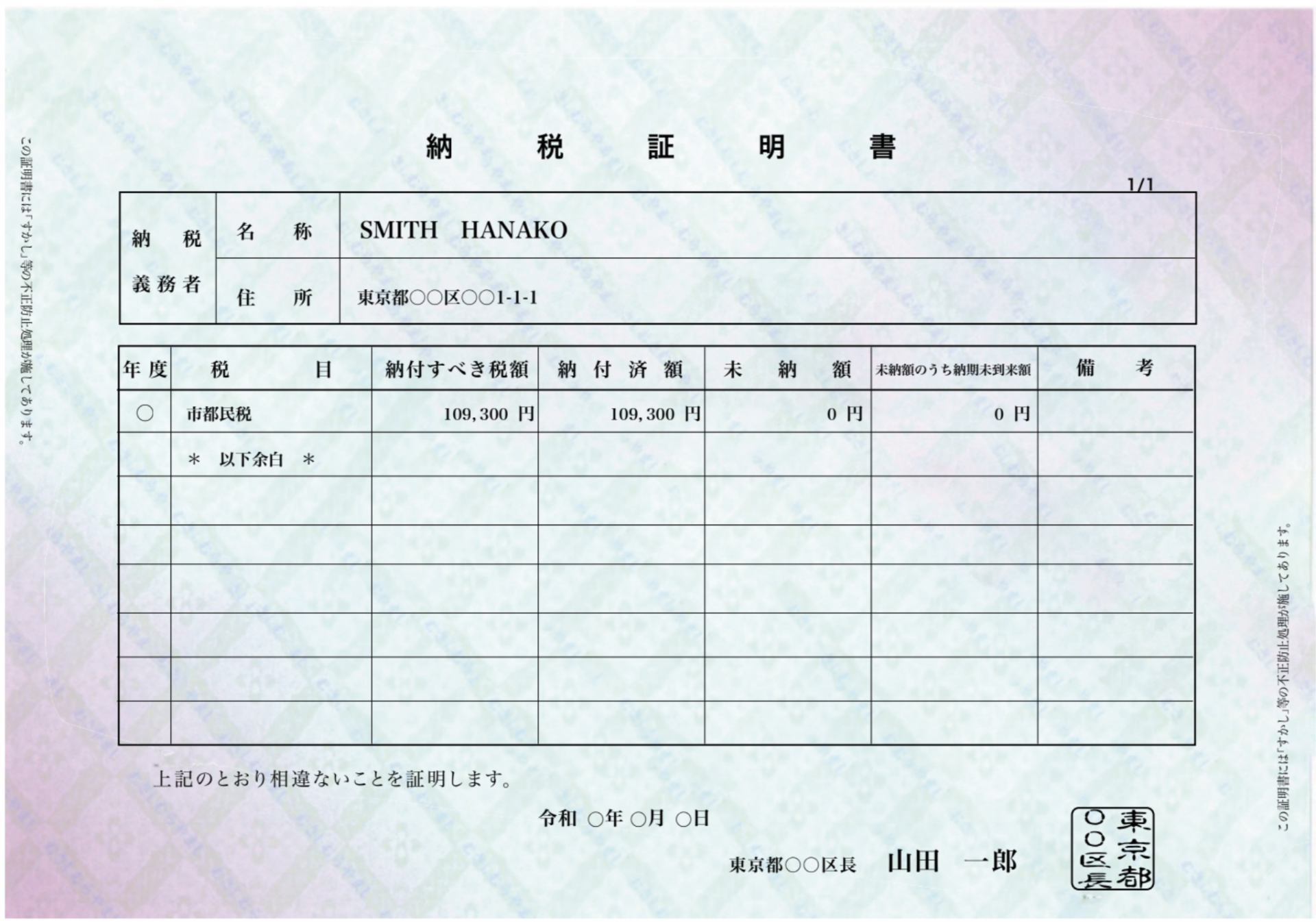 直近年度の納税証明書 (全ての納期が経過しているもの)