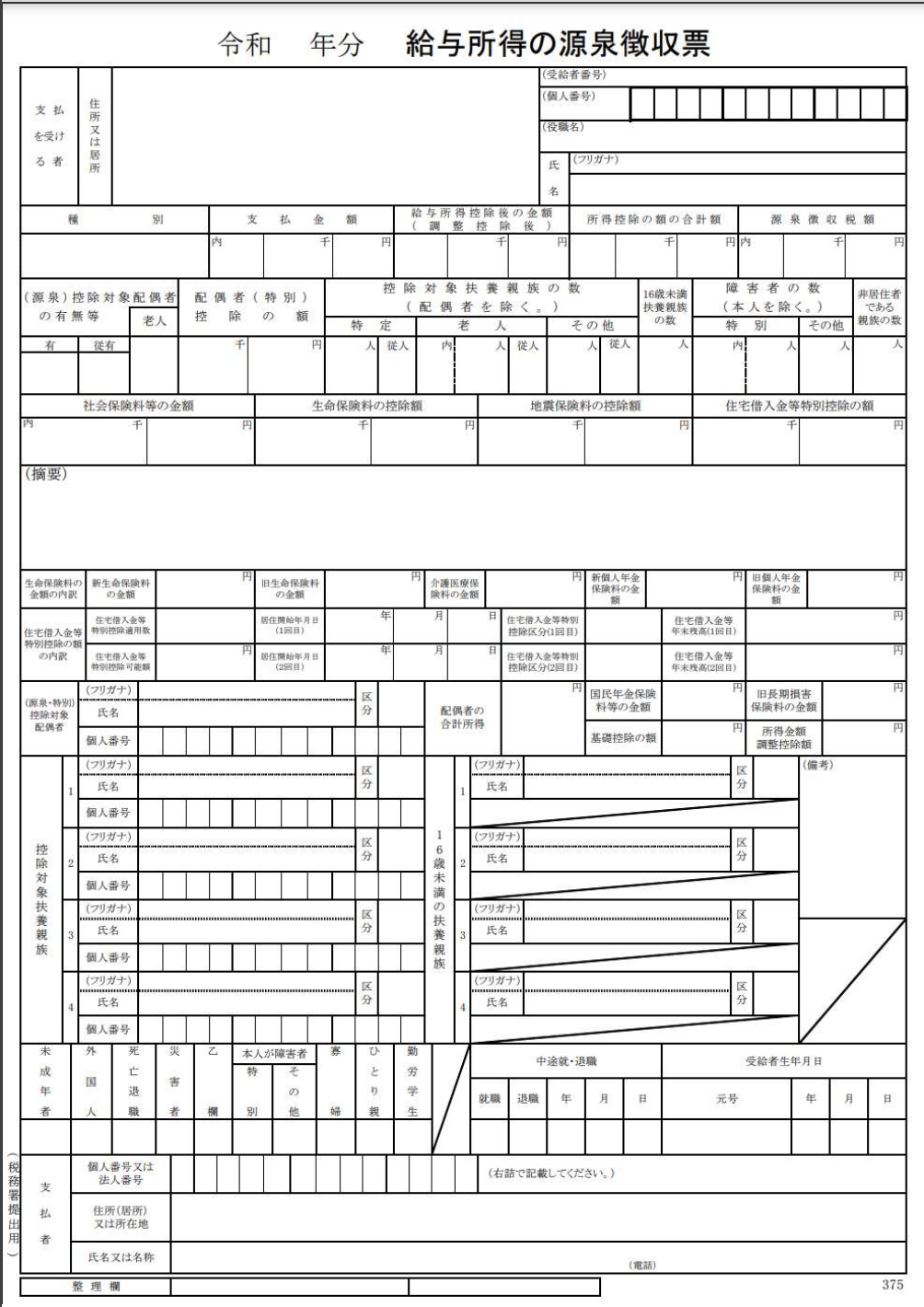 直近年分の源泉徴収票