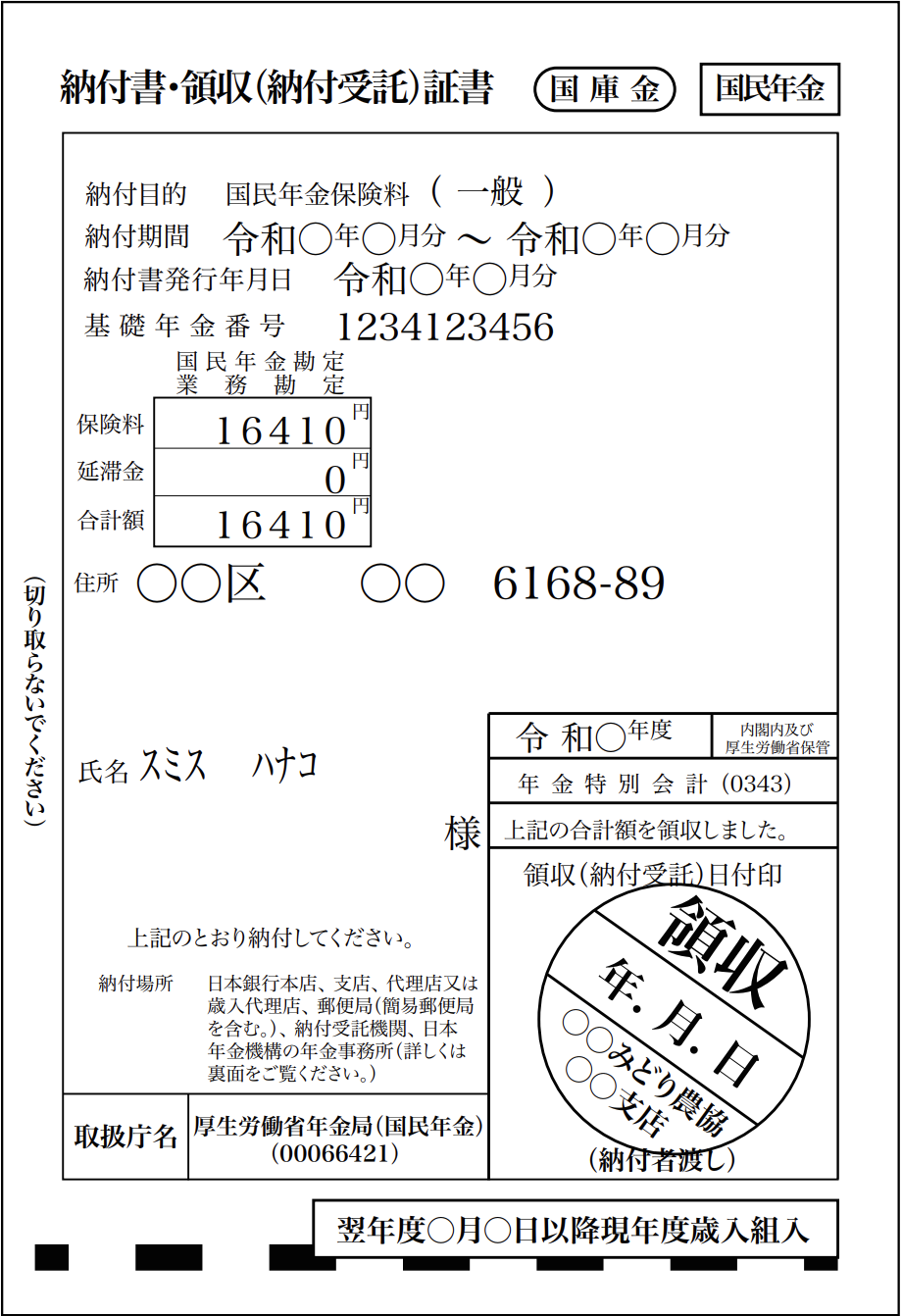 国民年金保険料領収証書コピー