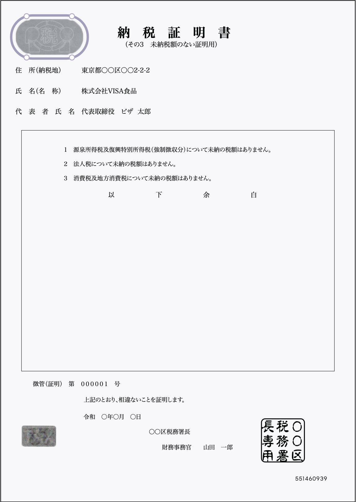 納税証明書 (その3) [3税目:源泉所得税及び復興特別所得税、法人税、消費税及び地方消費税]