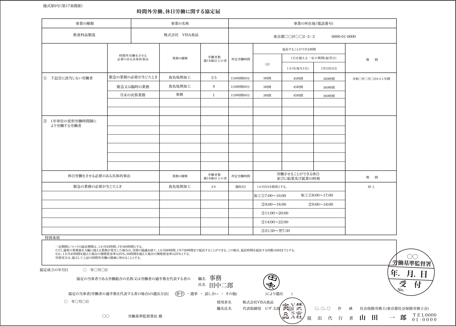 36協定の時間外、休日労働に関する協定届 (特別条項を含む)コピー