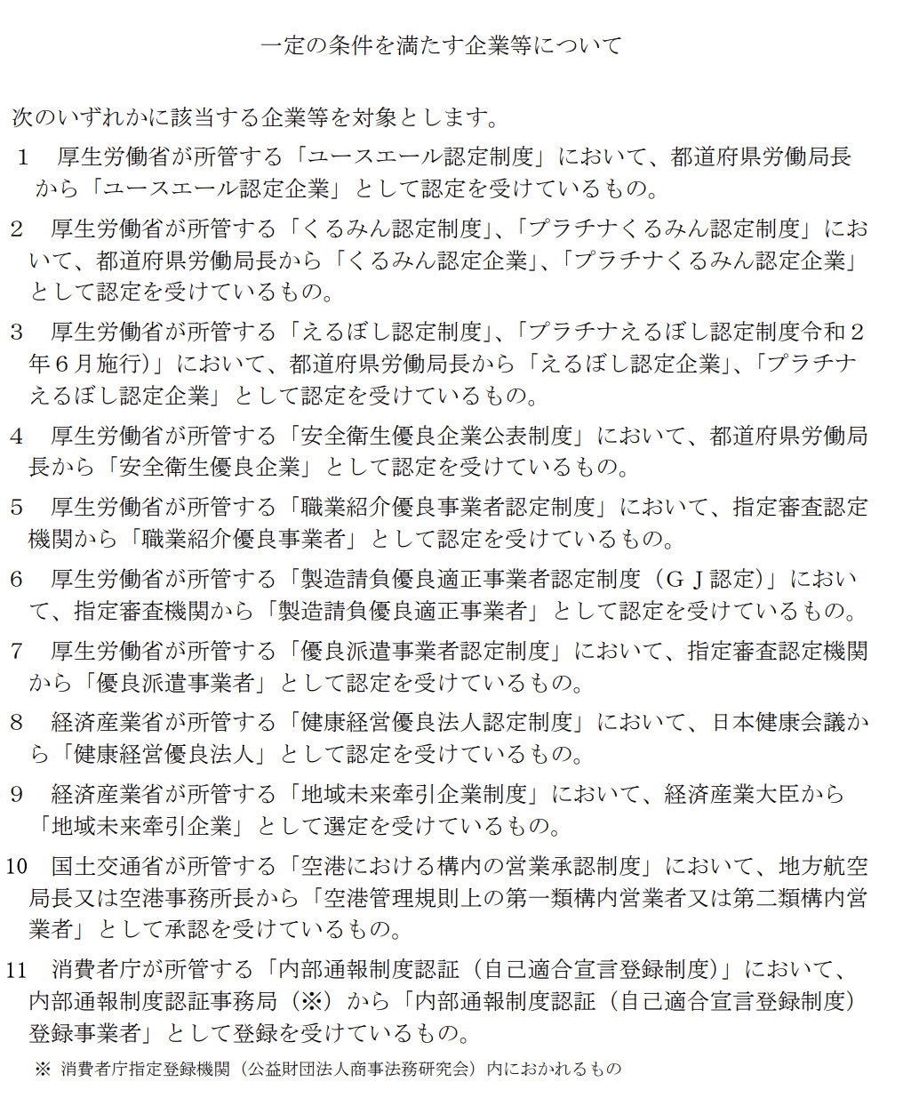 | ・一定の条件を満たす企業等に該当しない |