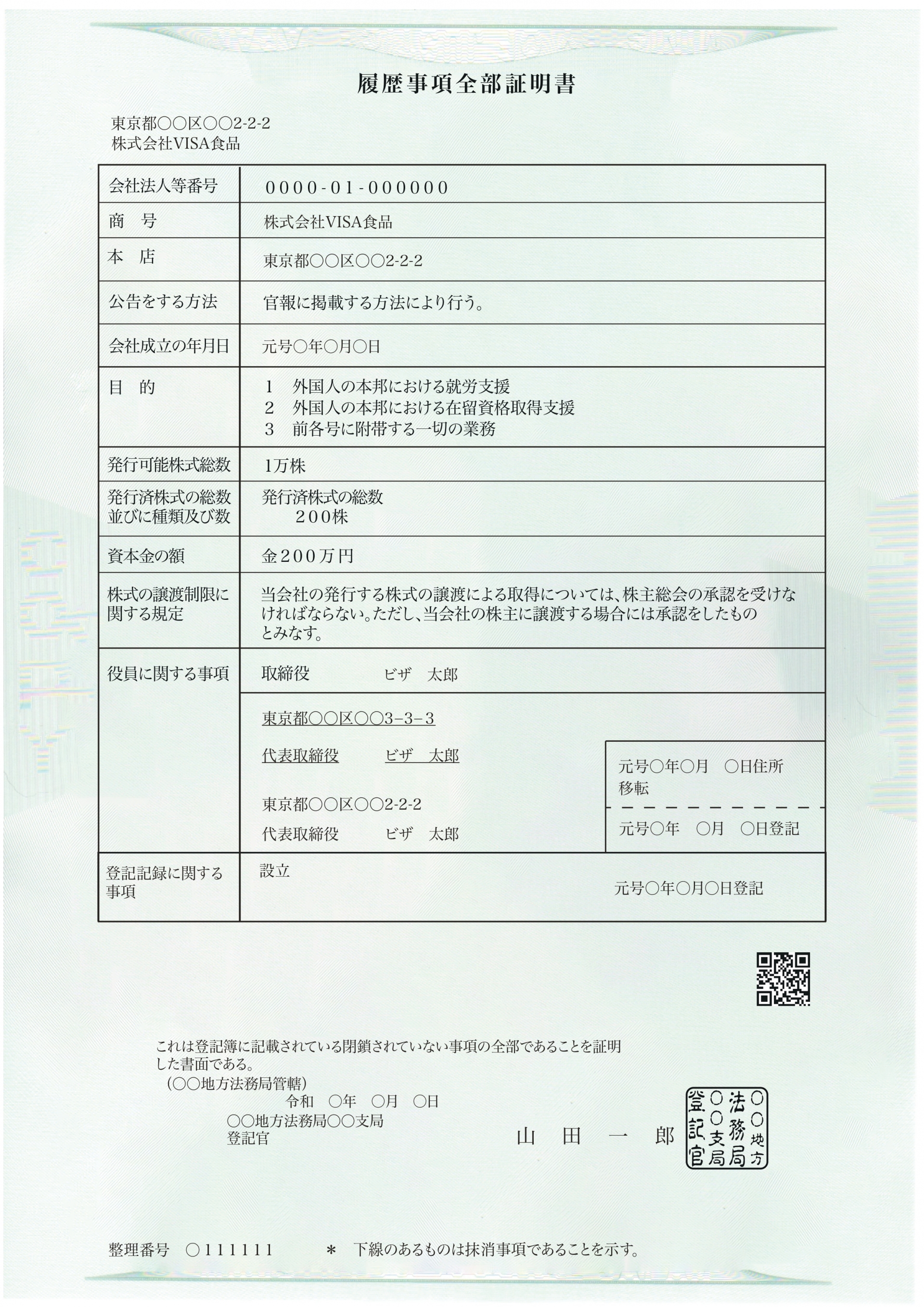 登記事項証明書 (履歴事項全部証明書)