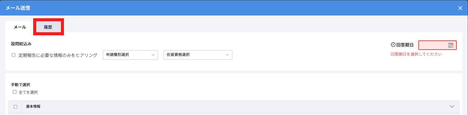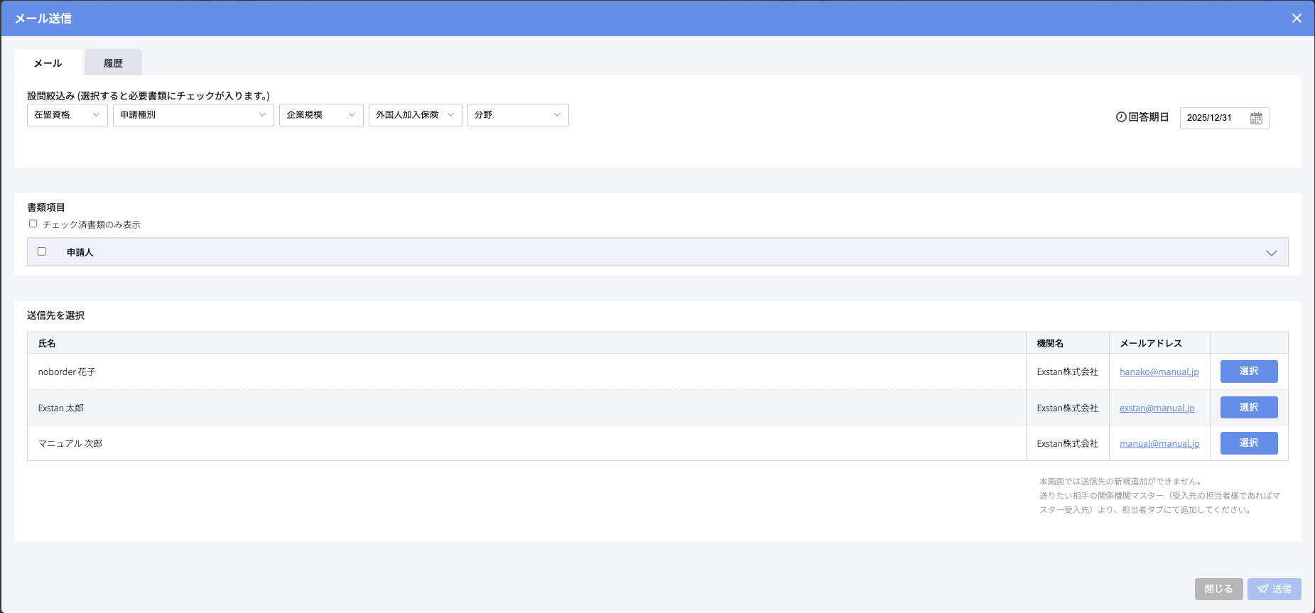 再送する場合、回答期日を再設定した上で書類項目を設定し再度送信してください。