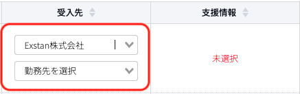 選択した勤務先が反映されます。