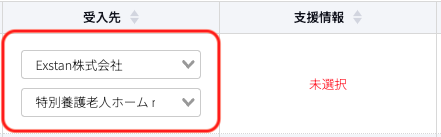 プルダウンから紐づける受入先を選択