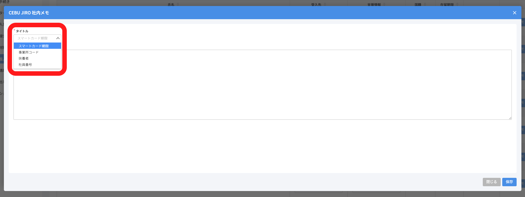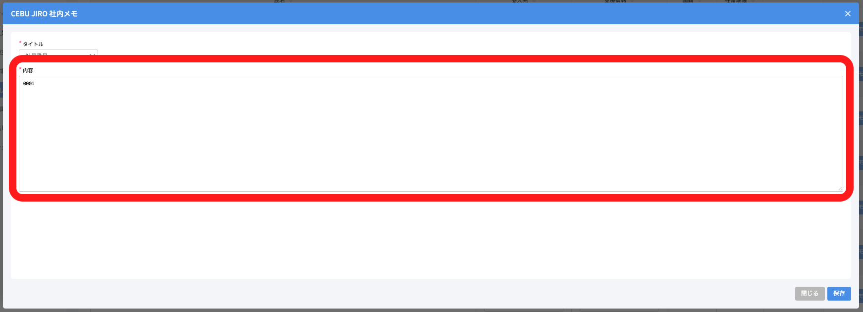 →現在設定されている社内メモタイトルが一覧表示されます。