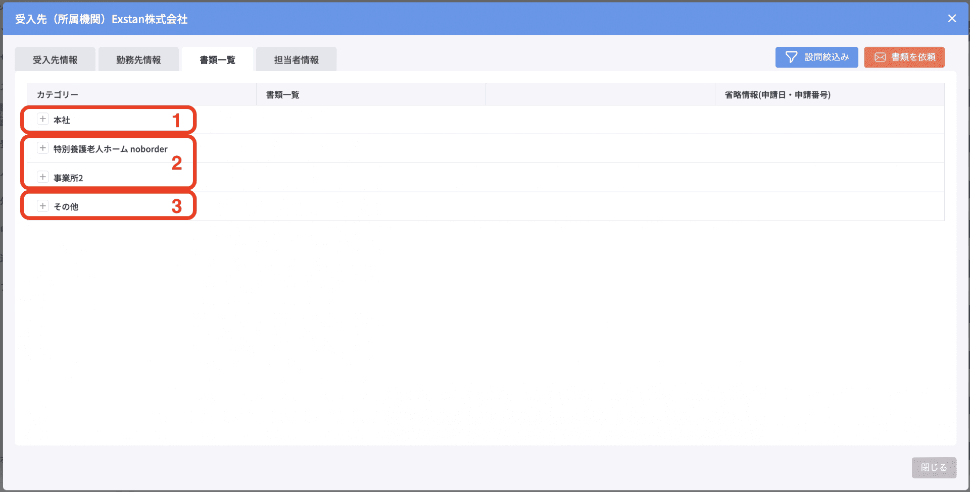 書類一覧のカテゴリ名です。書類項目の種類ごとに整理されています。