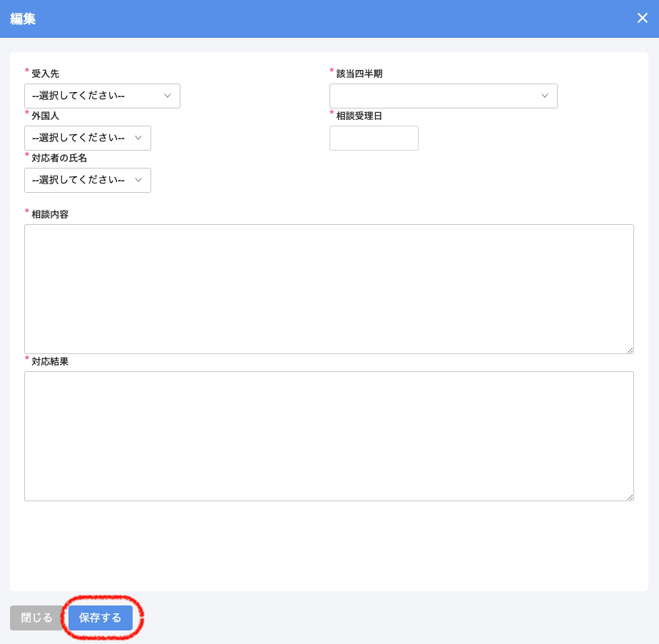 外国人に行った支援・トラブルの対応等は記録しておくことで、今後のサポートにも役立つ情報のため、作成・届出を強く推奨しております。