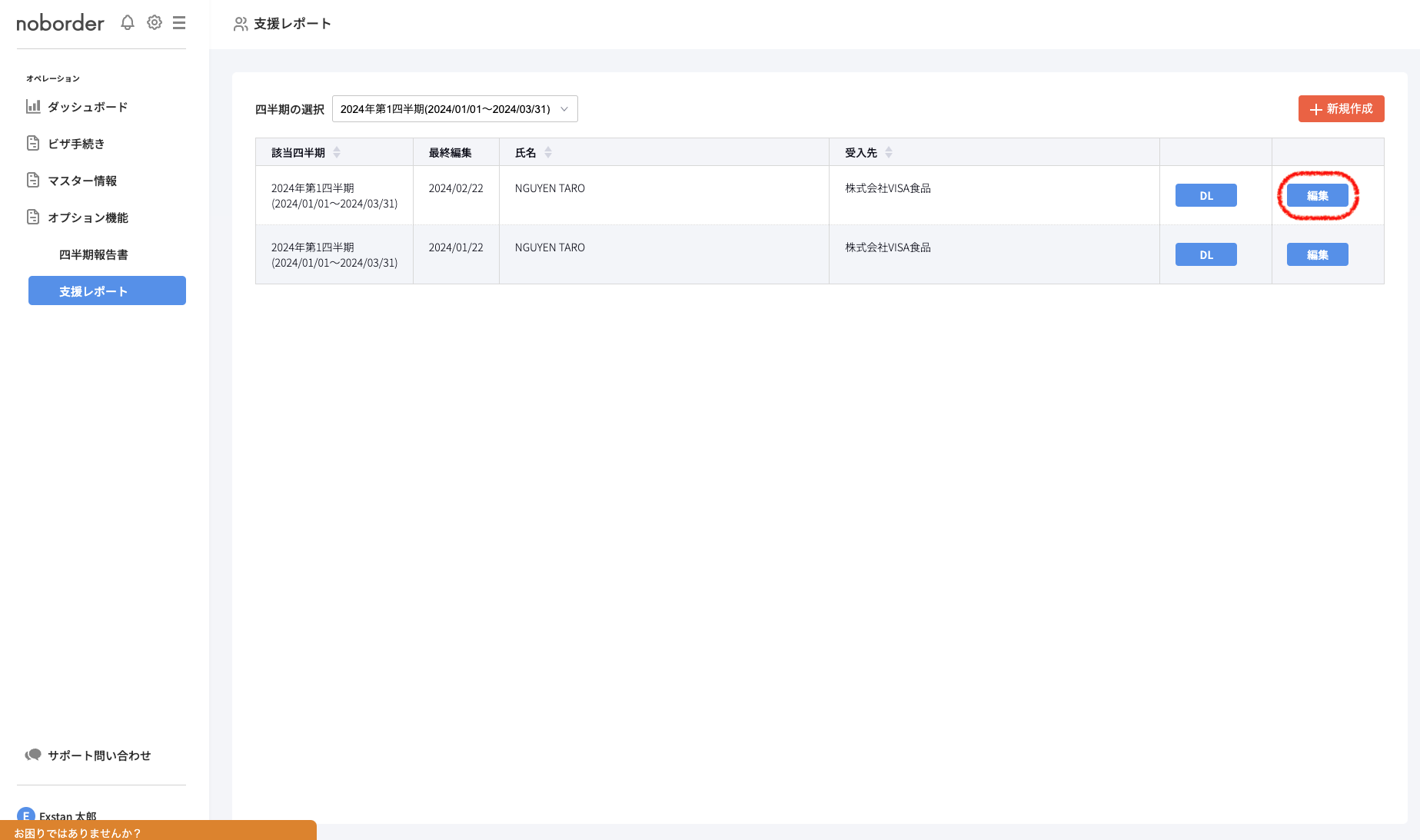 入力した支援レポートを編集する